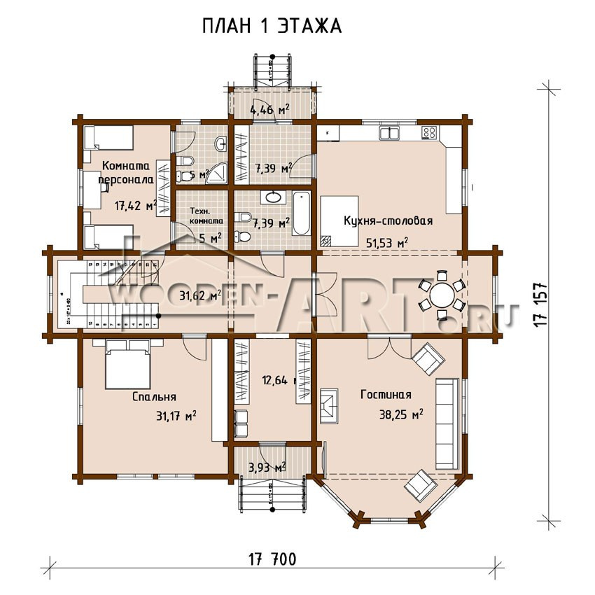 Размеры дома: 17,15 м х 17,70 м