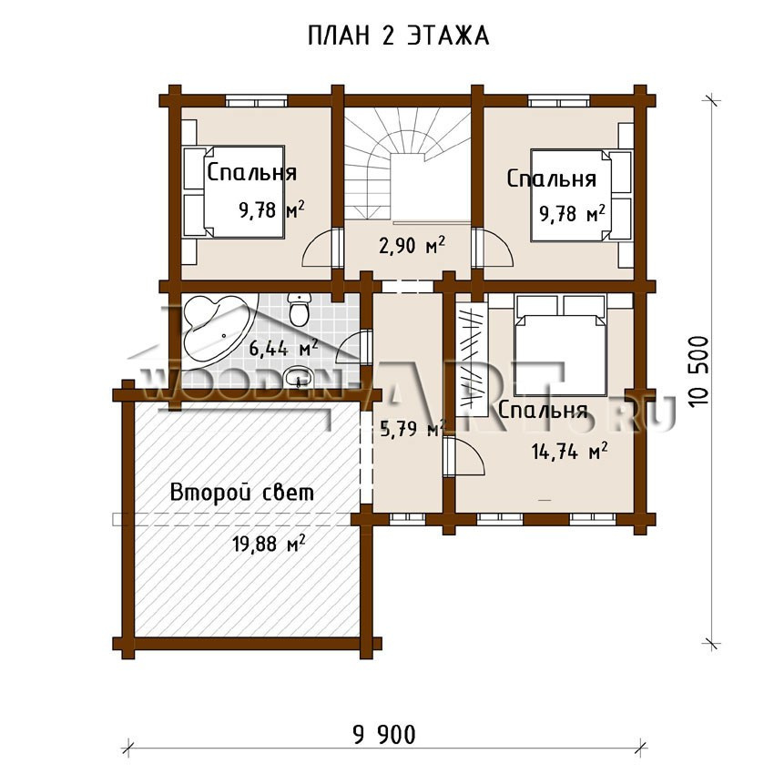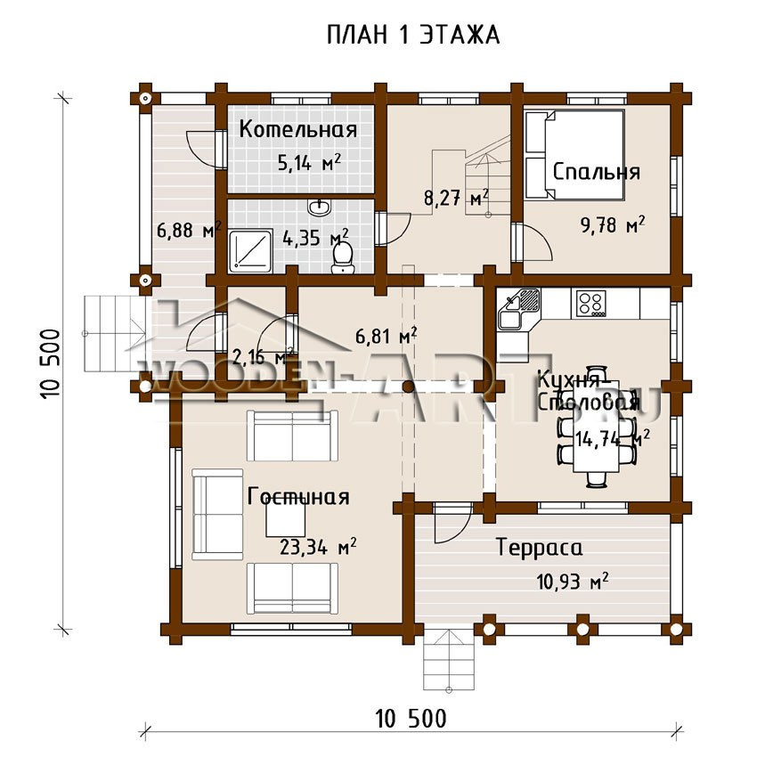 - Размеры дома: 10,4 м х 10,5 м