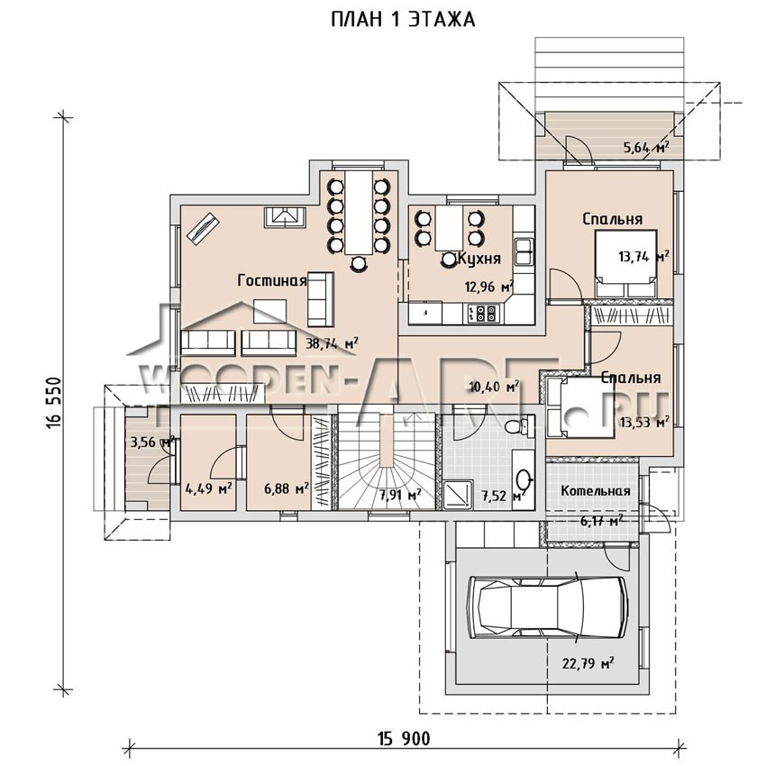 Размеры дома: 16,5 м х 15,9 м