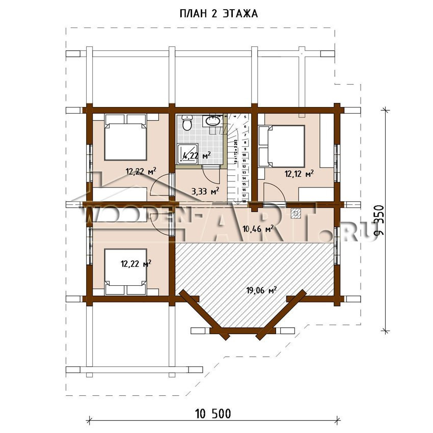 - Размеры дома: 13,4 м х 10,5 м