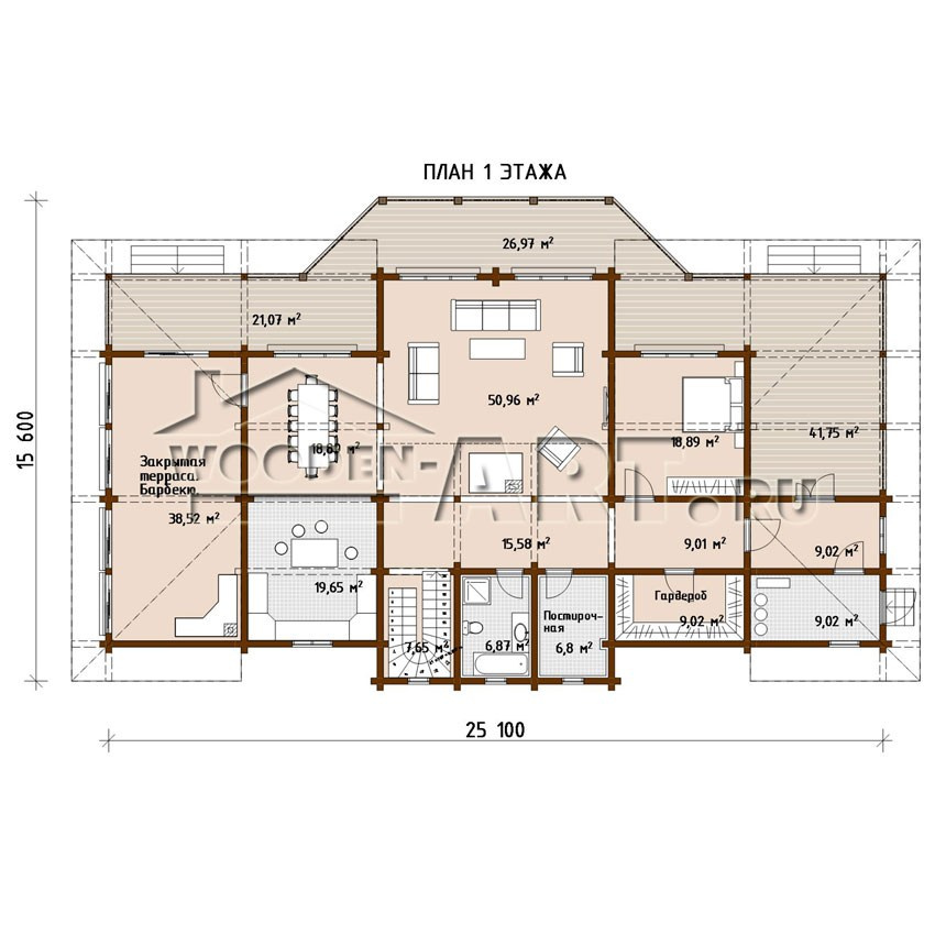 Размеры дома: 13,1 м х 25,1 м