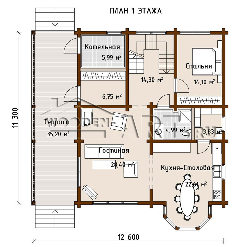 Размеры дома: 11,3 м х 12,6 м