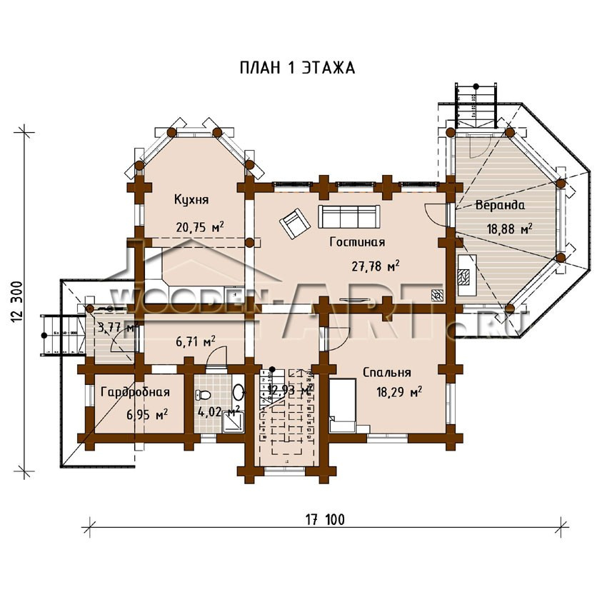 - Материал: оцилиндрованное бревно