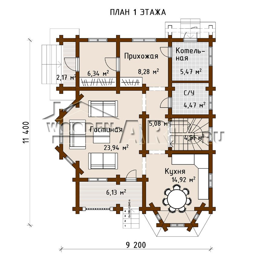 Размеры дома: 11,4 м х 9,2 м