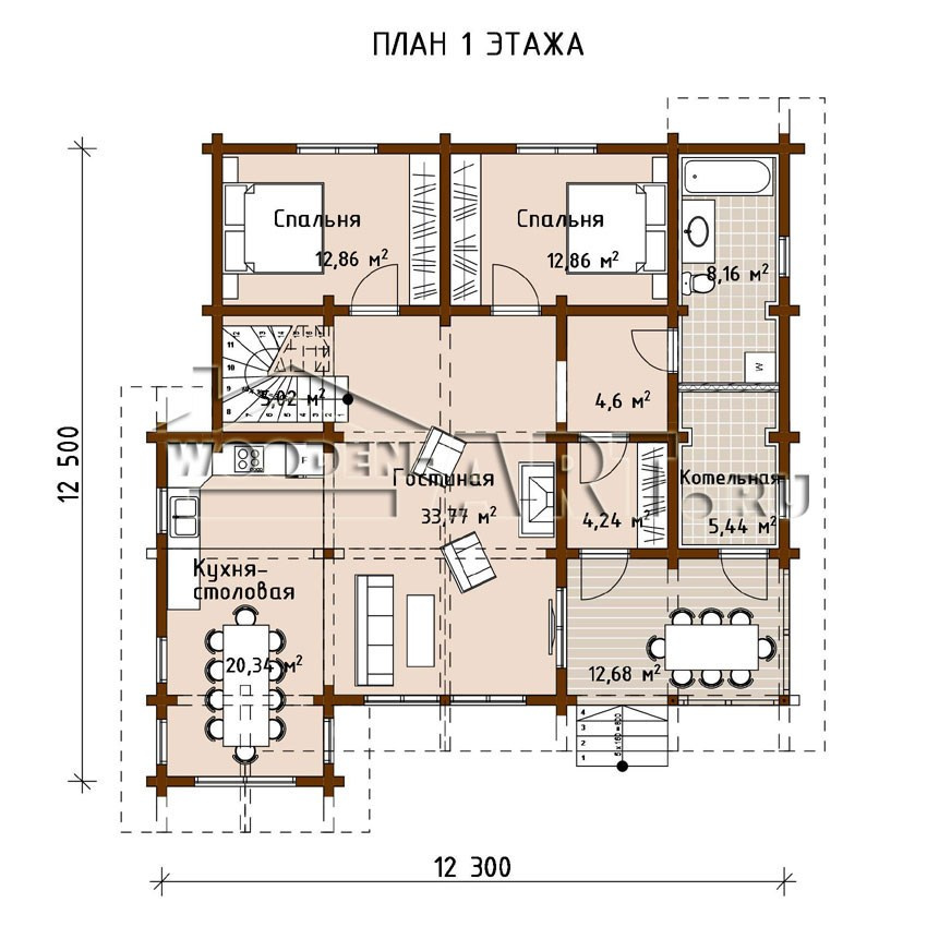 Размеры дома: 12,5 м х 12,3 м