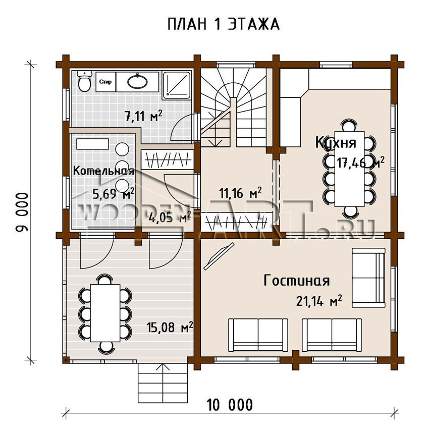 Размеры дома: 9,0 м х 10,0 м