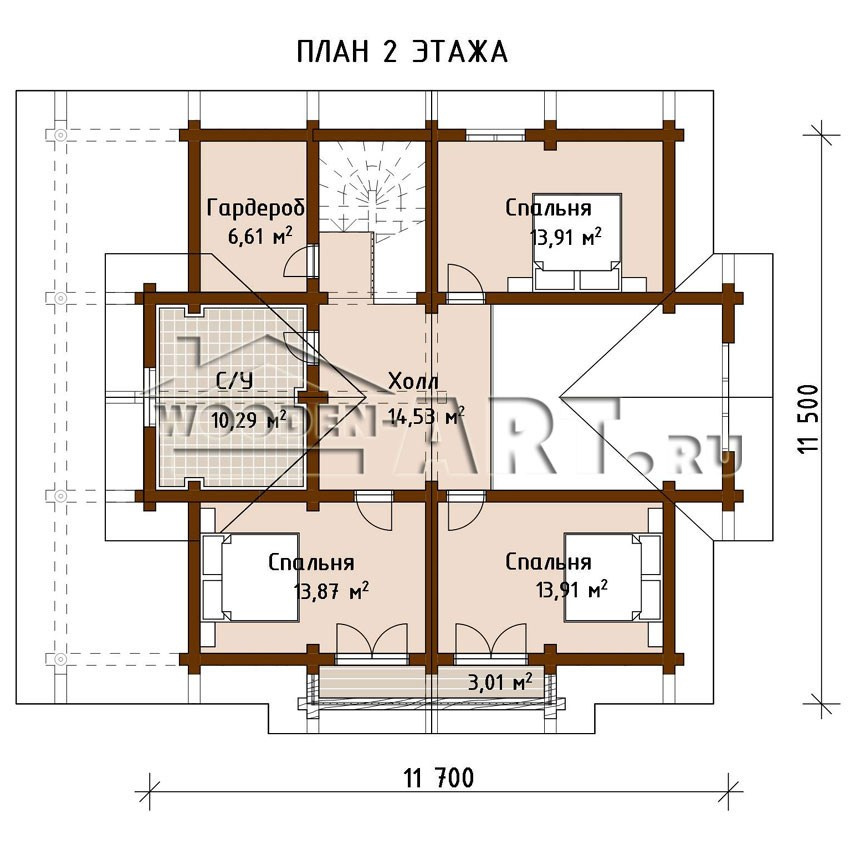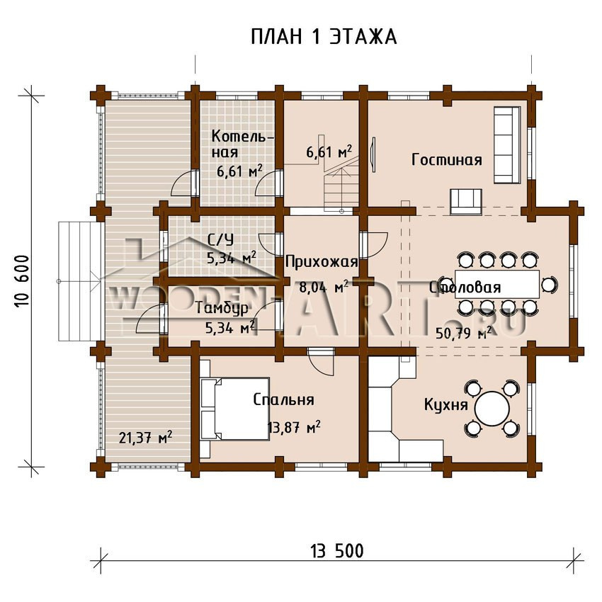 Размеры дома: 10,6 м х 13,5 м