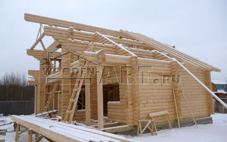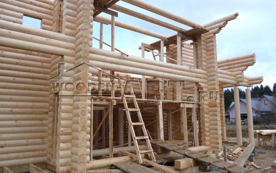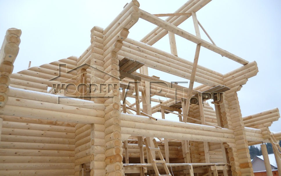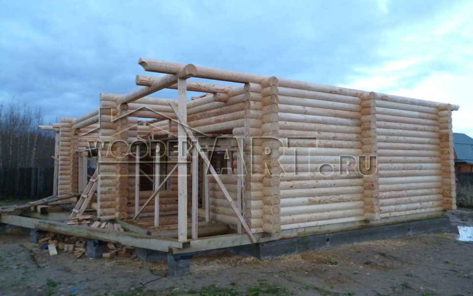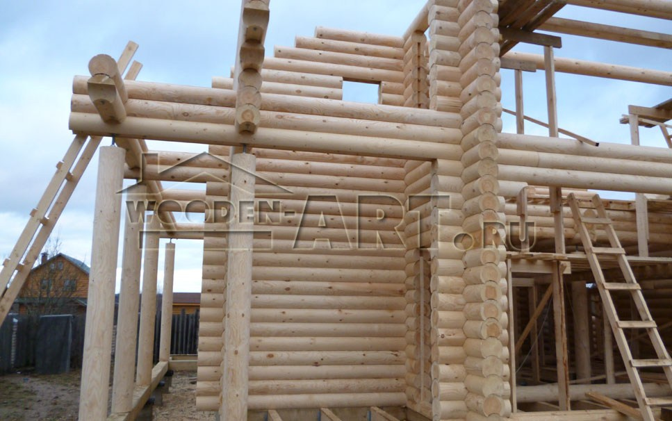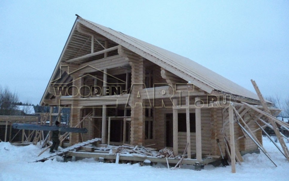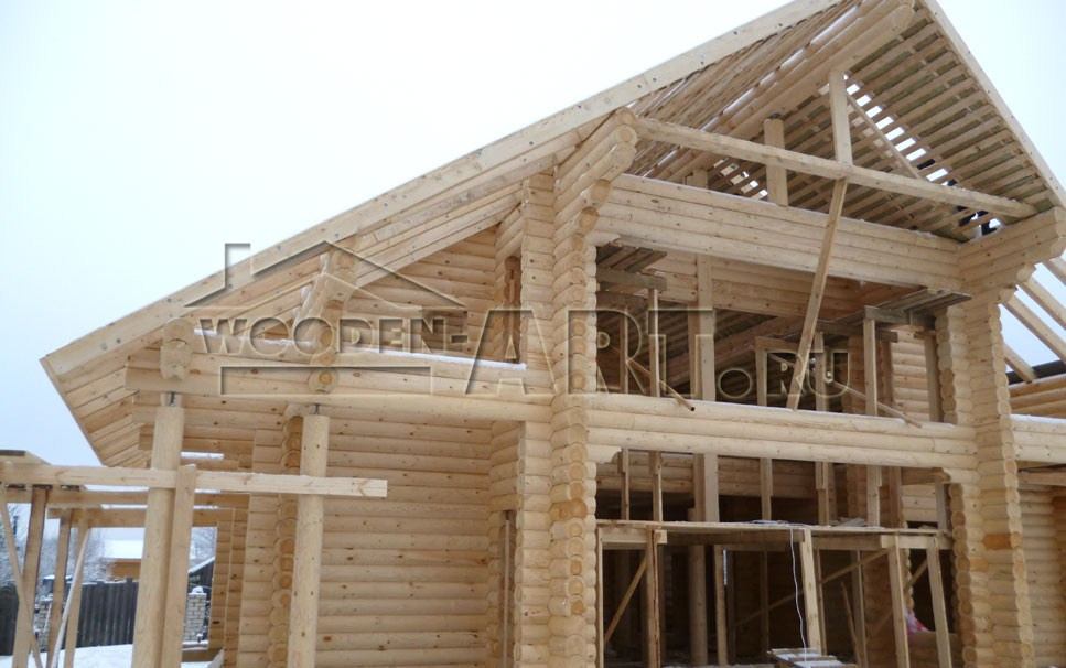 В доме спроектированы каркасные перегородки. Иногда Заказчики хотят сэкономить на первом этапе строительства и заменяют стеновой материал на каркас. Это я делать не рекомендую, т. к. в итоге, стоимость монтажа каркасных перегородок будет больше, чем стоимость монтажа стен из бревна. Плюс, соединение каркаса с бревном не является простой задачей, т. к. бревно дышит, а каркас нет. Здесь необходимо соблюдать технологию возведения каркасных перегородок в деревянном доме. Внутренние стены, выполненные из стенового материала, делают деревянный дом крепче. Каркасные перегородки не придают деревяннму дому жесткость.