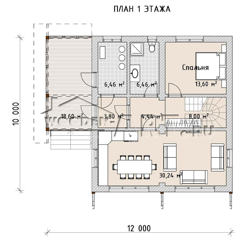 Размеры дома: 12,0 м х 10,0 м