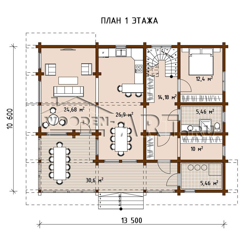 - Размеры дома: 10,6 м х 13,5 м