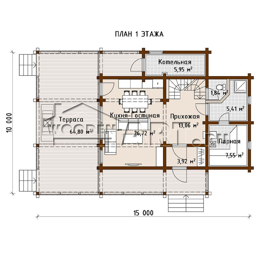 Размеры дома: 10,0 м х 15,0 м